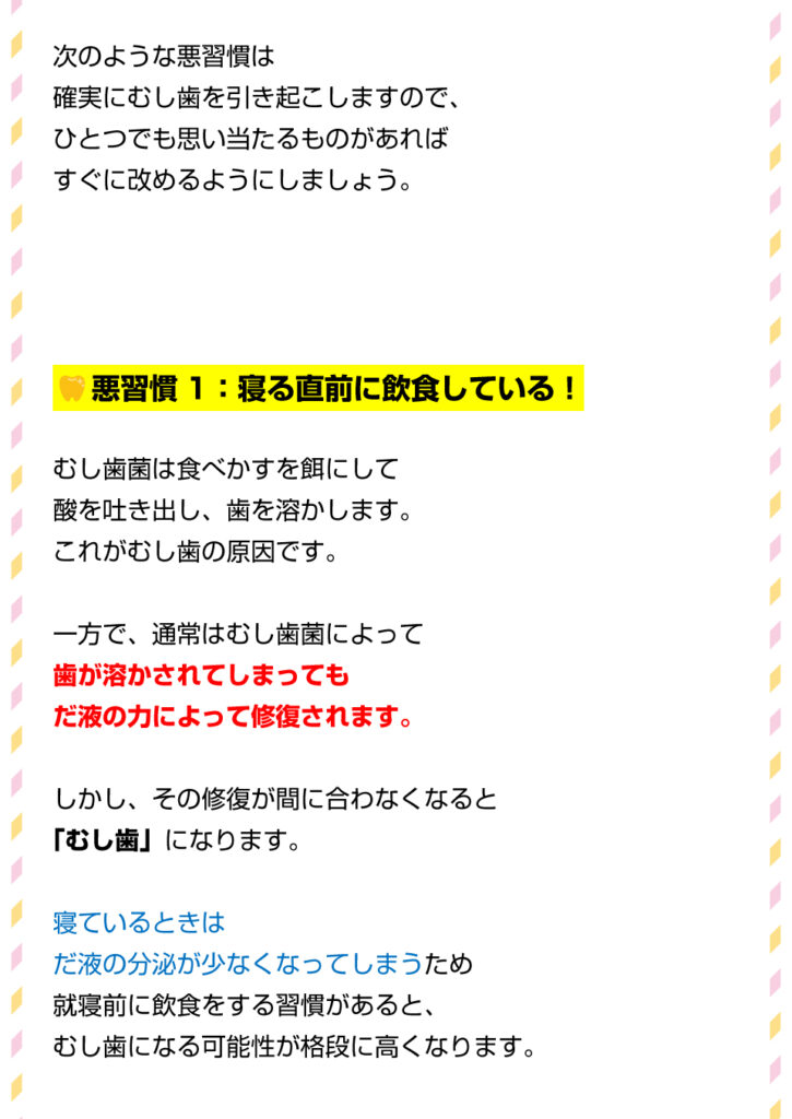 今回は虫歯ができる悪習慣についてのお話です。